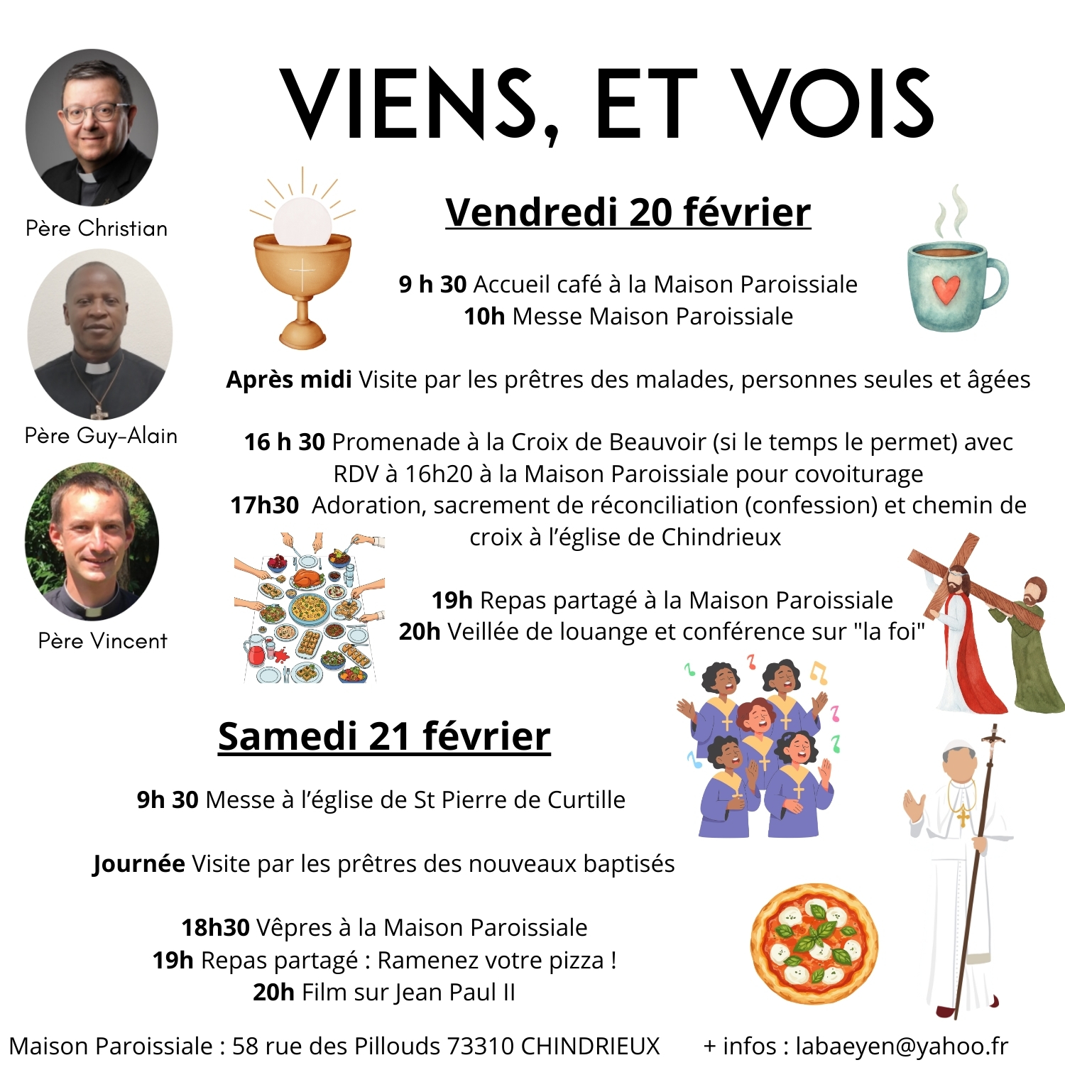 17h30 Adoration, sacrement de réconciliation (confession) et chemin de croix à l’église de Chindrieux